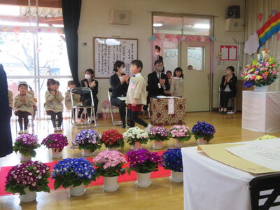 式にはたんぽぽ組さんも参加し、厳かな中にも、感動あふれる式となりました。