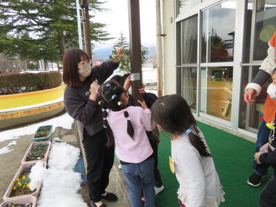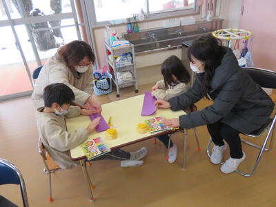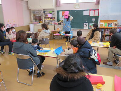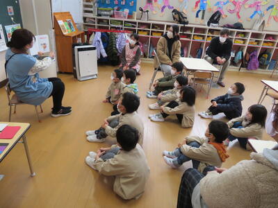 寒い中でしたが、保護者の皆様においでいただき、保育の様子をみていただきました。