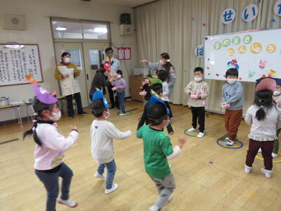 誕生会の後は豆まき会です。