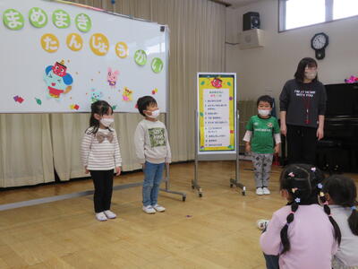 今日は2月生まれの誕生会でした。年少さん1名のお祝いをしました。