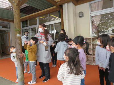 今日の会は、年少さんが係の仕事をしてくれました。これまでの年長さんの姿をお手本に、頑張ってやってくれました。