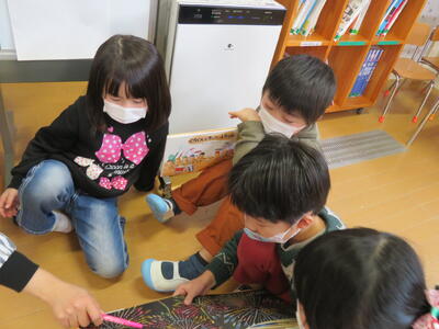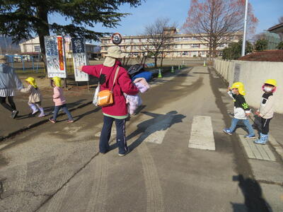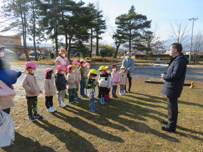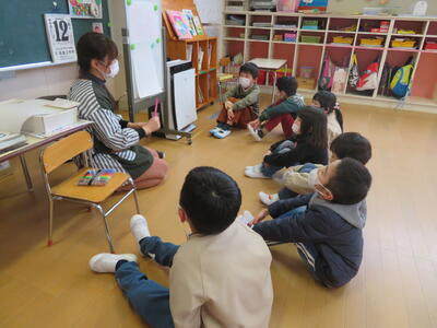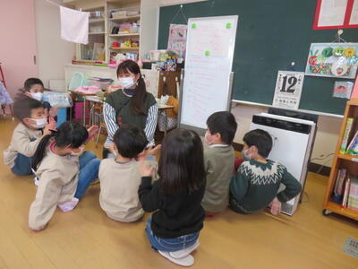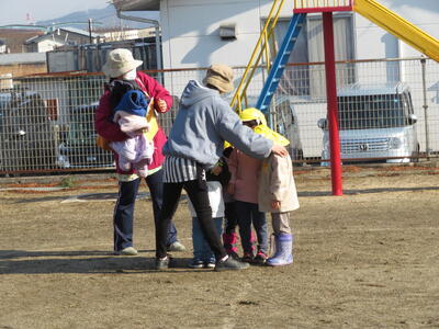 園歌を歌った後、「三学期も仲良く遊ぼうね」とお互いにあいさつしました。