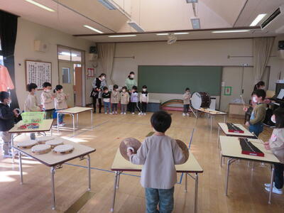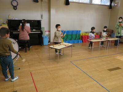 最後にみんなで演奏会です。とても上手に演奏できました。「生活発表会でも、おうちの人に見てもらいたいな・・・」というつぶやきもありました。