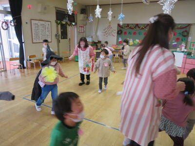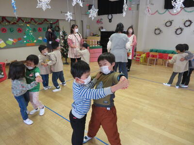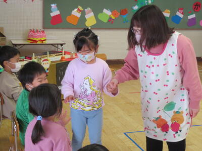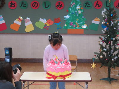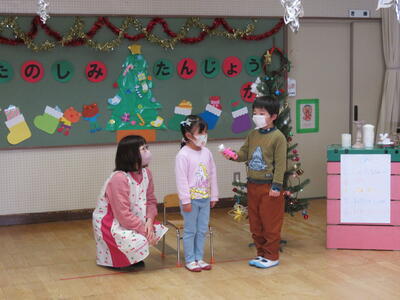 年少さん2名の誕生会です。(残念ながら1名は欠席でしたので、1月の会の時にみんなでお祝いすることとしました。