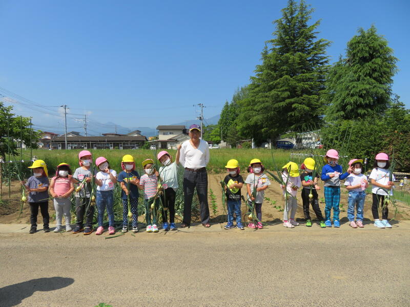 地域見学の途中 畑で玉ねぎを頂戴しました
