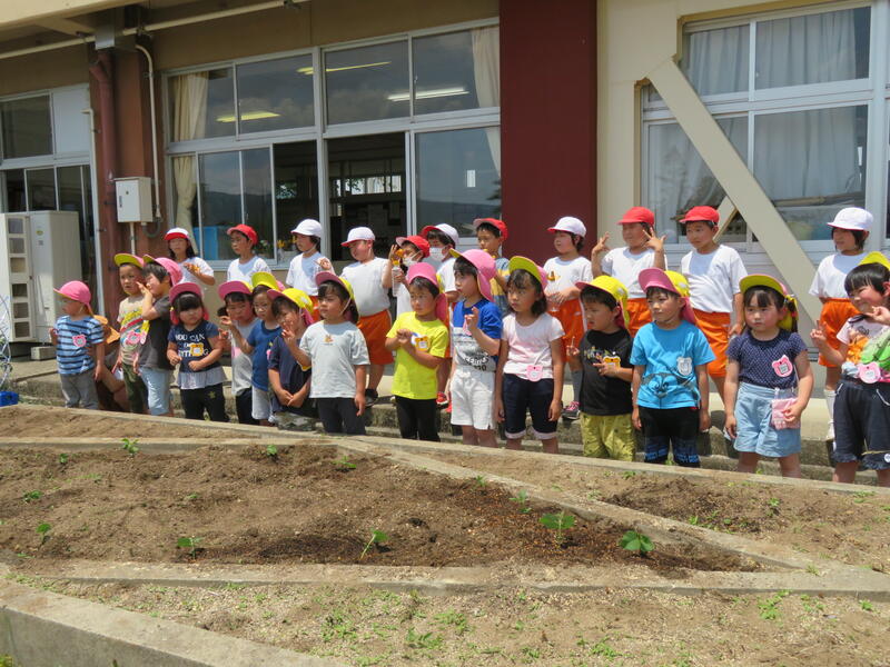 佐倉小学校2年生と一緒に(豆の苗を植えた後に)