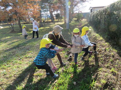 午前中、たんぽぽ組さんは、秋季遠足で行った公園で遊んできました。