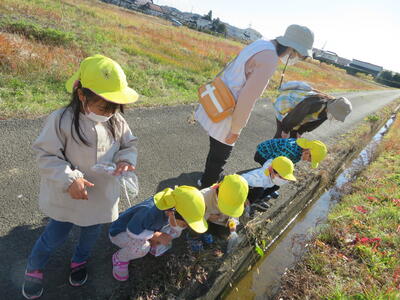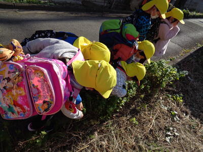 たんぽぽ組さんは、園周辺の探検に出かけました。いつもだと年長さんも一緒に行くのですが、感染状況を鑑みて、年少さんだけで出発しました。