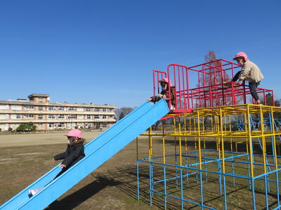 最後はジャングルジムで遊びました。幼稚園のよりも少しサイズが大きいです。