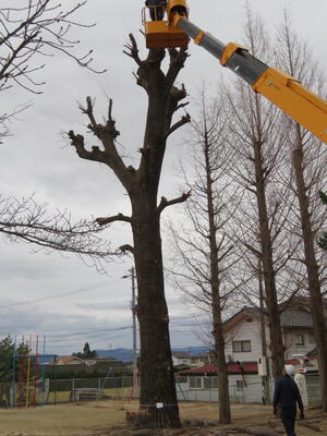 先週末、朝出勤すると、強風のため園庭にあるポプラから大きな枝が落ちていました。