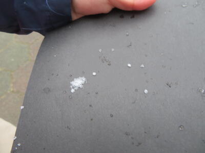 雪の結晶を見ることができたようです。もっともっと気温が低くなると、さらにきれいな結晶が見られることでしょう。