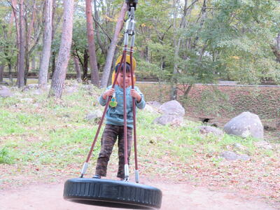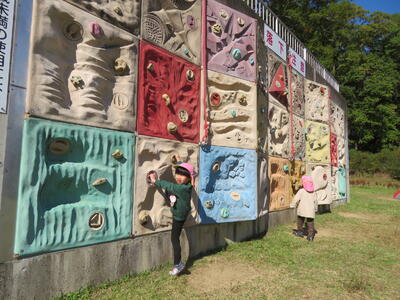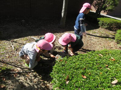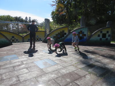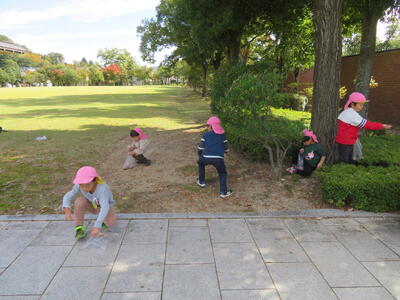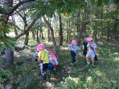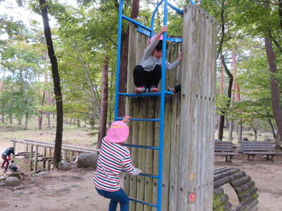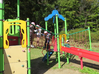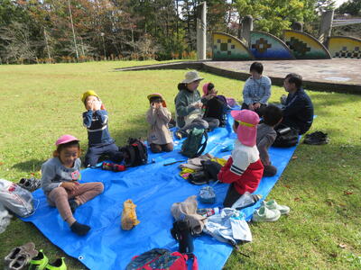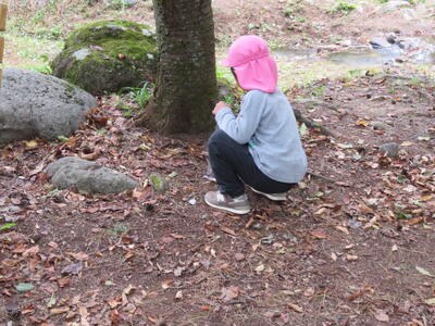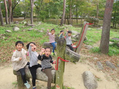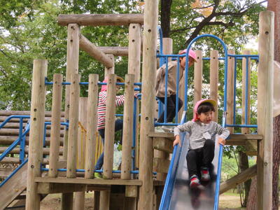 食事の後は遊びタイムです。遊具で遊んだり木の実を拾ったりしました。