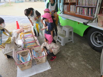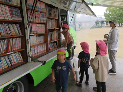 今日は小学校にしのぶ号が来る日です。