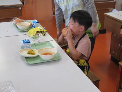 上手にできました。準備が終わって「いただきます。」