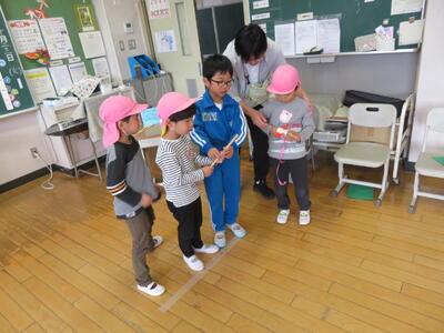 2年生のみなさんはとっても優しく接してくれました。園児たちも大喜びで帰りました。ありがとうござました。