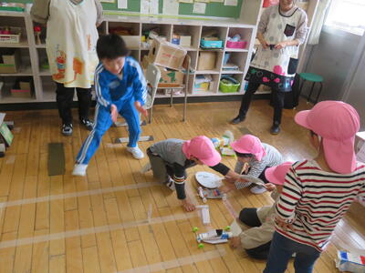 園児たちも熱中していました。3人のお兄さんがとっても丁寧に教えてくれました。