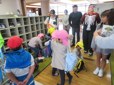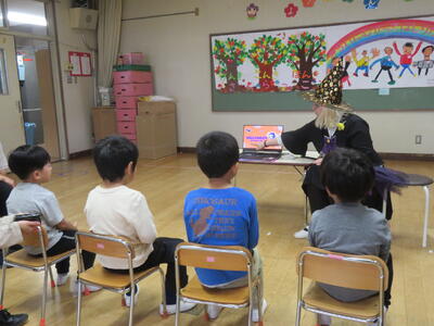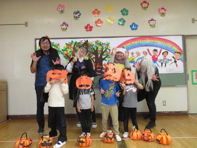 ステフィーからカナダのハロゥインについてお話を聞きました。日本との違いにみんなは驚きながら聞き入っていました。