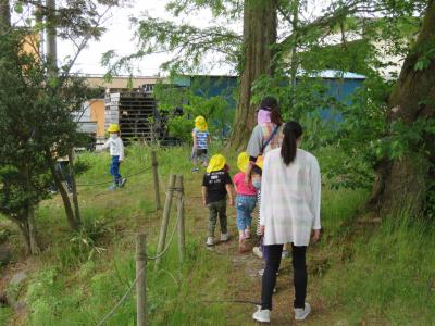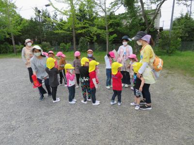 次は命の池周辺で松ぼっくり拾いを楽しんで幼稚園に戻りました。