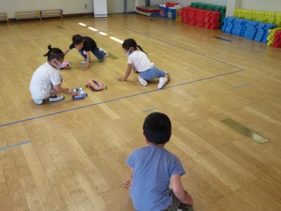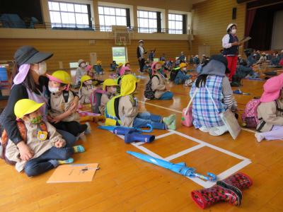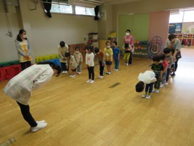 ちゅうりっぷ組さんにとっては、幼稚園で初めての訓練です。