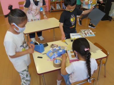 何人かは、ティッシュボックスを使って車づくりをしていました。
