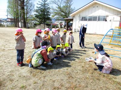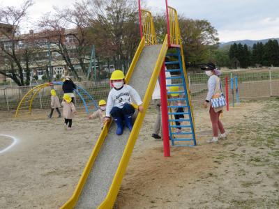 昨日初めて園庭で遊んだたんぽぽ組さんですが、今日も園庭に出て元気よく遊びました。
