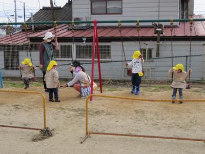 とても天気の良い園庭では、ちゅうりっぷ組さんが、遊びました。