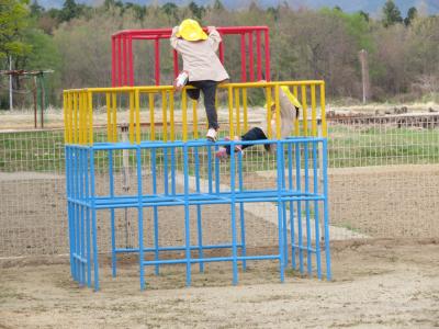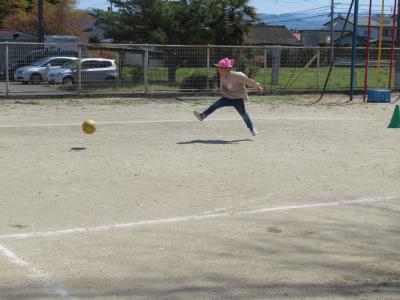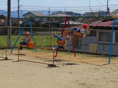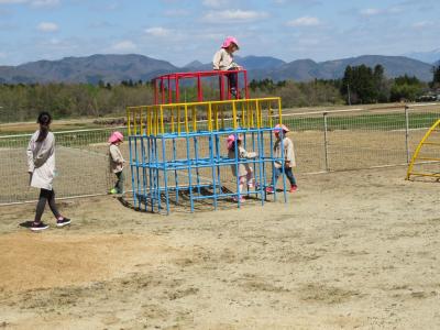 マラソンをした後は自由遊びです。真っ先にブランコに集まり、その後はジャングルジムで遊んだり、中にはボールをけって遊ぶ男児もいました。