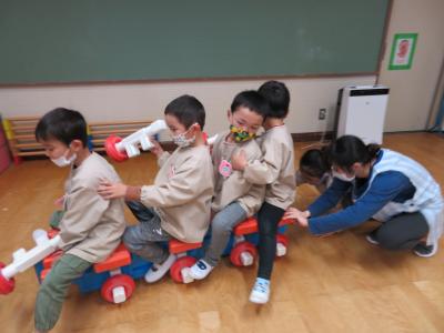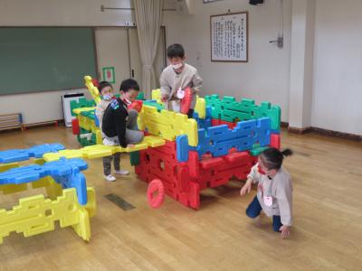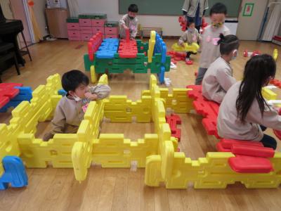 ちゅうりっぷ組さんも最初は好きな遊びをしました。年長さんは集団で遊ぶ姿が多くみられます。楽しく、仲良く過ごしました。