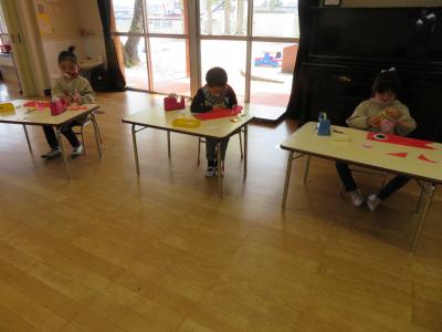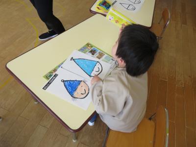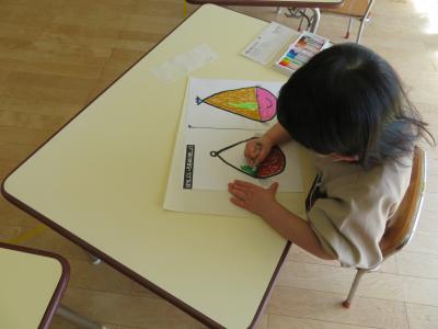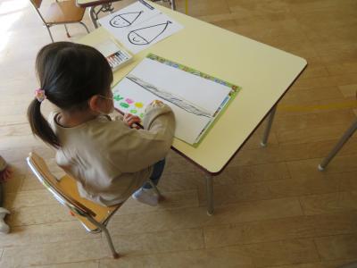 続いて、こいのぼりづくりです。集中して作っていました。これも年長さんらしい姿です。