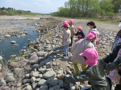ちゅうりっぷ組さんは、午前中荒川までお散歩に行ってきました。