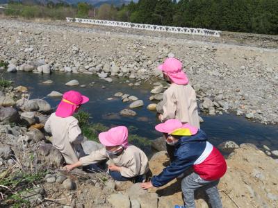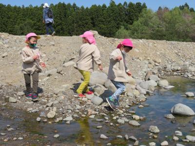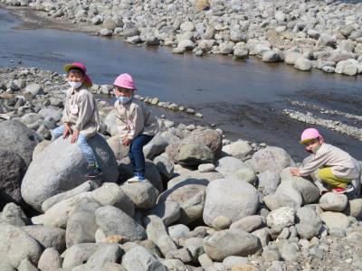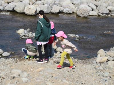川では、石投げをして遊んだり、気に入った石を1個選んだりして楽しく過ごしました。