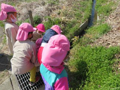 帰り道、気になるところがあり、みんなでのぞき込んでいます。子供たちの興味は尽きません。
