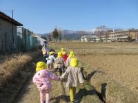 2021年3月11日 11時53分年少(たんぽぽ組)は天候がよかったので、久しぶりに学校周辺の散歩に出かけました。子どもたちは周辺の山々を眺めたり、田んぼや畑、周辺の風景を眺めたりしながら、春の芽吹きを感じていました。