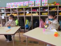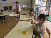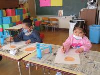 年少(たんぽぽ組)は、保育室の3月の壁面制作を始めました。子どもたちは、画用紙に肌色の絵の具を使って丁寧に頭と首の部分を描きました。どのような壁面になるのか楽しみです。