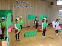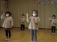 2月13日(土)に約30名の保護者及びご家族の方においでいただき、生活発表を開催しました。コロナ対策のため三密にならないよう演技の場所や座席を広く取り、一部の窓を開けて換気を十分に行いながらの開催でしたが、天気にも恵まれ寒さを感じない状況で行うことができました。子どもたちは、練習のとき以上に力を発揮し、頑張って演技をしたり歌ったりして、多くの皆様に感動を与えました。