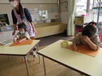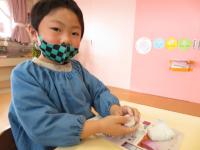 年長(ちゅうりっぷ組)は、ひな祭りに向けて紙粘土でお内裏様とお雛様の2体を作りました。子どもたちは、紙粘土を上手に丸めて頭を作ったり、円錐形にして胴体を作ったりしました。粘土が乾燥してから色を塗って、目や口、鼻などを描き入れて完成させ予定です。