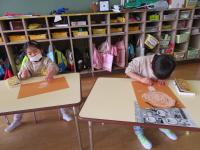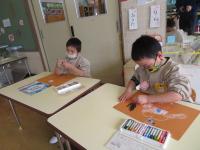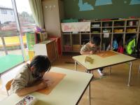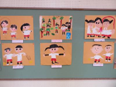 年長(ちゅうりっぷ組)は、生活発表会で特に思い出に残った演技の絵を描きました。子どもたちは、特に顔の表情を丁寧に描き、喜びや楽しさをうまく表現していました。子どもたちにとって、たいへん充実した生活発表会であったことがうかがわれます。