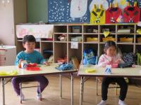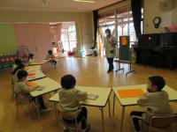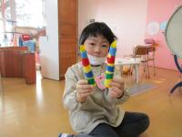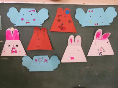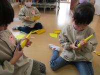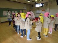 年少(たんぽぽ組)は、2月13日(土)に開催する生活発表会で発表する楽器遊び「山の音楽家」で被るお面をつくりました。子どもたちは、自分が被るウサギやタヌキ、小鳥のお面に目や口、鼻など思い思いに描き入れました。とてもかわいらしいお面が出来上がりました。発表会でそれを被って演奏するのを楽しみにしています。