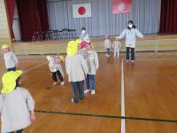 年少(たんぽぽ組)は、佐倉小学校の体育館で思いっきり遊びました。冬場は園庭がぬかるんで走り回って遊ぶことがなかなかできないため、小学校の体育館をときどきお借りして遊んでいます。子どもたちには、鬼ごっこで遊び、体育館内を所狭しと駆けずり回っていました。どの子も顔が紅潮したいへん満足した顔をしていました。