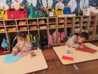 2021年2月1日 13時13分明日2月2日は節分です。年長(ちゅうりっぷ組)は、節分の豆まきに使用する豆を入れる升を模画用紙で作りました。子どもたちは、丁寧に紙を折り升を作っていました。今回の節分に当たり、豆まきに使用する大豆を6月に植えたのをスタートに、収穫、脱穀を行ってきました。また、鬼の張り子のお面も完成しており、すべて準備が完了しました。明日の豆まきが楽しみです。
