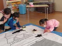 年少(たんぽぽ組)は、2月13日(土)開催の生活発表会演ずるオペレッタ「なかよし忍者」の背景画であるお城の色塗りを行いました。子どもたちは、大きな筆を使って下書きの線からはみ出ないように慎重に塗っていました。みんなで作り上げるオペレッタ、どのようになるのか当日が非常に楽しみです。