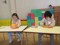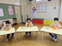明日2月2日は節分です。年長(ちゅうりっぷ組)は、節分の豆まきに使用する豆を入れる升を模画用紙で作りました。子どもたちは、丁寧に紙を折り升を作っていました。今回の節分に当たり、豆まきに使用する大豆を6月に植えたのをスタートに、収穫、脱穀を行ってきました。また、鬼の張り子のお面も完成しており、すべて準備が完了しました。明日の豆まきが楽しみです。