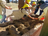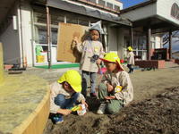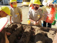 年少(たんぽぽ組)は、ちゅうりっぷの球根を植えました。子どもたちは、来年4月からちゅうりっぷ組になりますが、それにちなんで幼稚園の玄関前の花壇をちゅうりっぷの花でいっぱいにしようと、心を込めて一つ一つ丁寧に球根を植えました。これら毎日子どもたちは、土が乾燥していないか、草が生えていないか、ちゅうりっぷの芽が出ていないかなどを観察してながら、管理していきます。