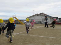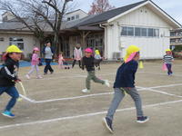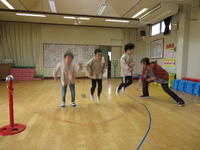 2020年11月30日 13時54分年長(ちゅうりっぷ組)は、今年度初めて縄跳びで遊びをしました。子どもたちは、縄を二重にして両手に持って足をくぐしたり、回したりし、慣れるにしたがい、本格的な連続跳びを行いました。また、長縄跳びを一人で跳んだり、みんなで跳んだりして楽しみました。今後は継続して縄跳びを行い、いろいろな技に挑戦していきます。