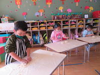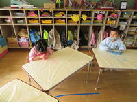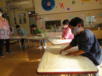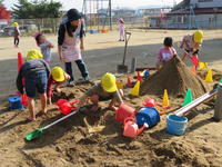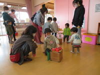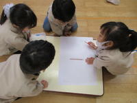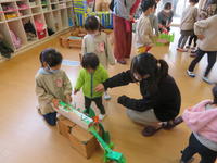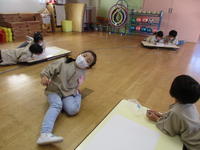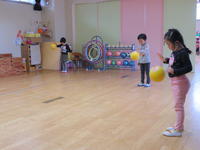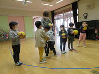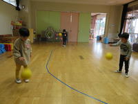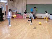 2020年11月20日 11時14分年長(ちゅうりっぷ組)は、第3回目のまりつき大会を開催しました。子どもたちは、運動会で頑張ったご褒美としてエルマーからもらったまりつきボールで、できるだけ長くいろいろな技でボールをついて遊んでいます。そして、それぞれの技能に応じて、レベル1、レベル2・・・・・と挑戦しています。本日の大会では、レベル2とレベル3に挑戦し、緊張のあまり失敗した子どももいましたが、多くの子どもたちがクリアーしました。レベル3までは音楽に合わせてその場でボールをつきますが、レベルが上がると時間が長くなり、4以上は足技などが加わってきます。