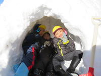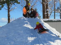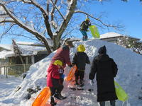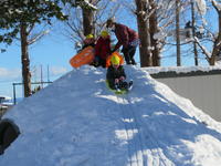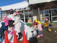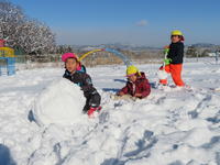 年少(たんぽぽ組)は、連日、手袋や長靴がびしょびしょに濡れながらも、雪遊びを大いに楽しんでいます。子どもたちは、年長(ちゅうりっぷ組)のかまくら作りを手伝ったり、雪を大きく丸めたり、石山からそり滑りをしたりとそれぞれに雪と戯れていました。