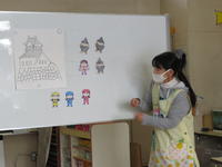 2021年1月13日 14時17分年少(たんぽぽ組)は、「なかよし忍者」のパネルシアターを見ました。子どもたちは、1学期より忍者ごっこをして遊んできたこともあり、真剣にパネルシアターを見ていました。今回は担任が話をしましたが、次回からは子どもが話をして「なかよし忍者」のペープサートで遊ぶ予定です。楽しみですね!