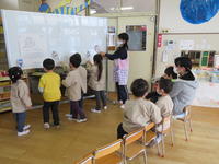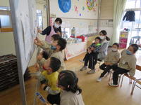 2021年1月14日 11時39分年少(たんぽぽ組)は、昨日、担任が演じた「なかよし忍者」のパネルシアターを見て楽しみましたが、本日はそれをもとに、子どもたちがペープサートを行い遊びました。子どもたちは、音楽に合わせて人形を動かし、感情を込めて場面の状況をうまく表現していました。