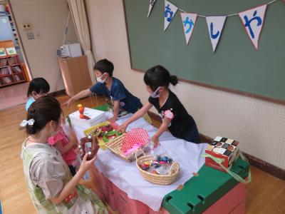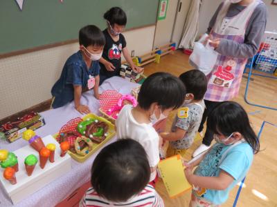 「いらっしゃーい いらっしゃーい」というちゅうりっぷ組さんの威勢の良い声がかかる中、どれにしようか迷いながら楽しく買いものができました。