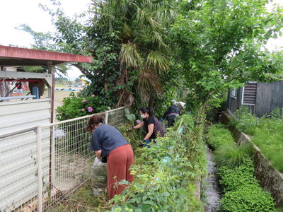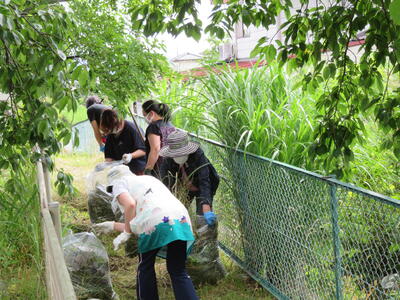 暑い中での作業となりましたが、あっという間に10袋以上の草が集まりまり、通路もとてもきれいになりました。
